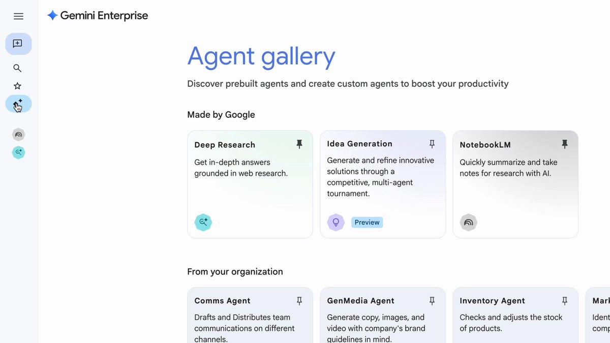 @googlecloud製品·2026年1月30日Google Cloud、「Gemini Enterprise」を発表 AIエージェントの統一ワークスペースを提供Google CloudはGemini Enterpriseを発表した。このプラットフォームは、カスタムおよびプリビルトのAIエージェントを単一のコラボレーション・ワークスペースで統一する。Agent Galleryにより、チームはAIツールを発見、共有、再利用でき、重複作業を削減する。